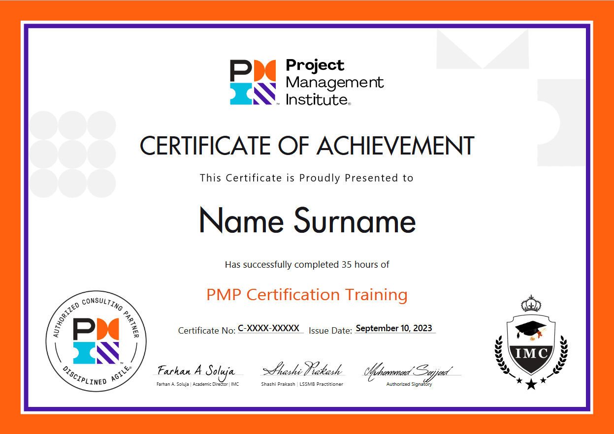 شهادة معتمدة من المعهد الأمريكي لإدارة المشاريع